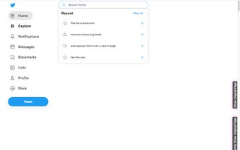 ส่วนขยายนี้จะทำการแทนที่ฟีดด้วยหน้าเพจการค้นหาบนเว็บไซต์ส่วนใหญ่ เพื่อให้ผู้ใช้ยังคงสามารถเข้าถึงเนื้อหาที่จำเป็นได้ โดยหลีกเลี่ยงสิ่งที่ทำให้หลุดสมาธิ Focus ยังมีความยืดหยุ่นในการปิดใช้งานส่วนขยายบนหน้าเพจที่เฉพาะเจาะจง โดยใช้ปุ่มที่ตั้งอยู่ทางด้านขวาของหน้าเพจ และสามารถเปิดใช้งานอีกครั้งได้ง่ายผ่านปุ่มที่ตั้งที่มุมล่างซ้ายของหน้าเพจ